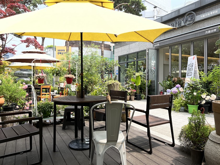 병원 쪽으로 내려가는 길, 꿈길에나 볼 법한 Cafe들이 연이어 있고 꽃과 화분으로 치창된 화원이 있는 공간이 있다. 그중 초록 문의 한 카페에 들어갔다. 커피는 맛있었고 가격도 적당했다.